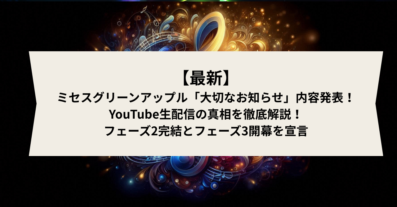 フェーズ2の完結、フェーズ3開幕、そしてファンクラブ10周年・新アルバム発表と、未来への布石が次々に明らかになりました。この記事では、ミセス大切なお知らせの全内容をわかりやすく整理し、今後の活動の見どころを徹底解説します。