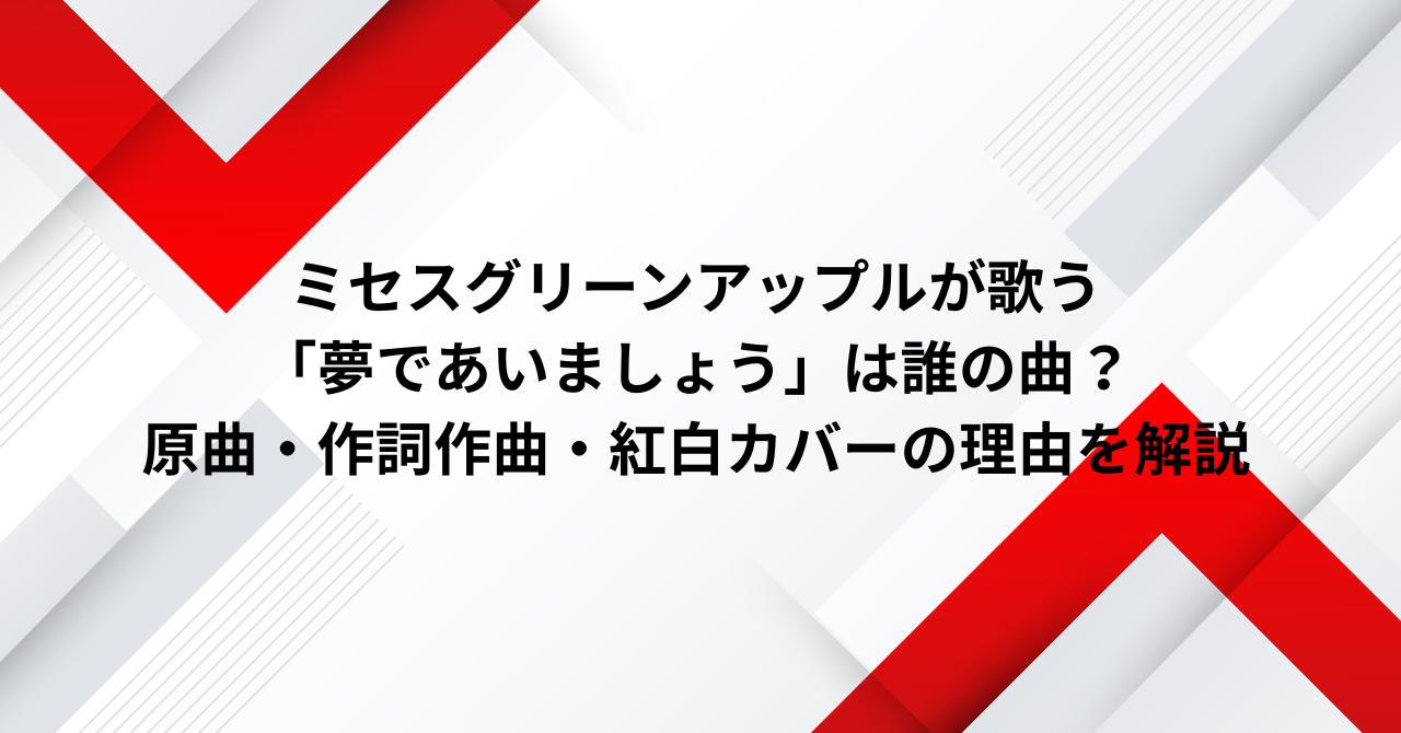 2025年の紅白歌合戦オープニング「放送100年 紅白スペシャルメドレー」で、ミセスグリーンアップル(ミセス)が披露する「夢であいましょう」。多くの視聴者が「誰の曲?」「ミセスの新曲?」と気になっているようです。